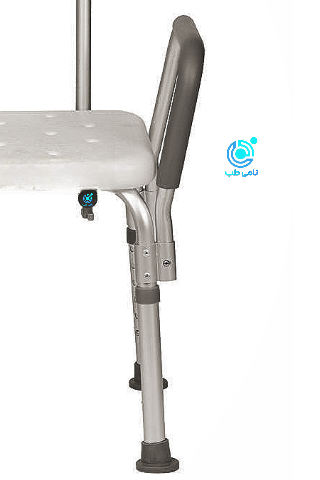 صندلى حمام. داراى دسته براى كمك به افراد حين نشستن و برخاستن ميشود و پايه هاى آن قابل تنظليم ارتفاع ميباشد.