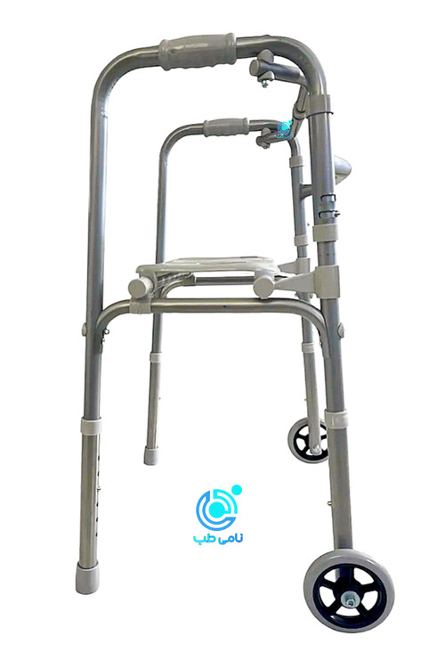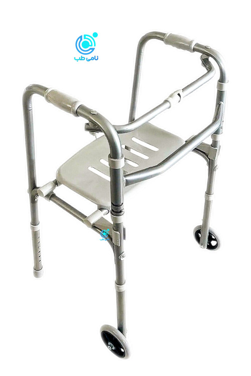 واکر آلومينيومى حلزونى چرخدار صندلی دار با بدنه های سبك و مقاوم از جنس تركيبى آلمينيوم و آهن طراحى شده است و به دليل داشتن چرخ و ساختار حلزونى، حركت و تعادل كاربر را به طور قابل توجهى آسان میکند اين واكر با صندلى تاشو مجهز شده تا فرد در هر زمان بتواند استراحت كند و از راحتى بيشترى برخوردار باشد. فاصله پايه های بدون چرخ52 سانتی متر ، فاصله پايه های جلو و عقب45 سانتی متر و فاصله دسته ها 5o سانتی متر در نظر گرفته شده است كه تعادل و ايمنى بيشترى را فراهم می اورد. همچنين ارتفاع دستگاه از 72 تا 86 سانتی متر قابل تنظيم است و با ابعاد جمع و جور 10x62*82 سانتی متر در حالت بسته، به راحتى در منزل يا خودرو قابل نگهدارى است. اين واكر قادر است وزن كاربر تا 160 كيلوگرم را تحمل كند و صندلى آن نيز تحمل وزن تا 150 كيلوگرم را داراست، بنابراين گزينه اى مطمئن و ايمن براى
