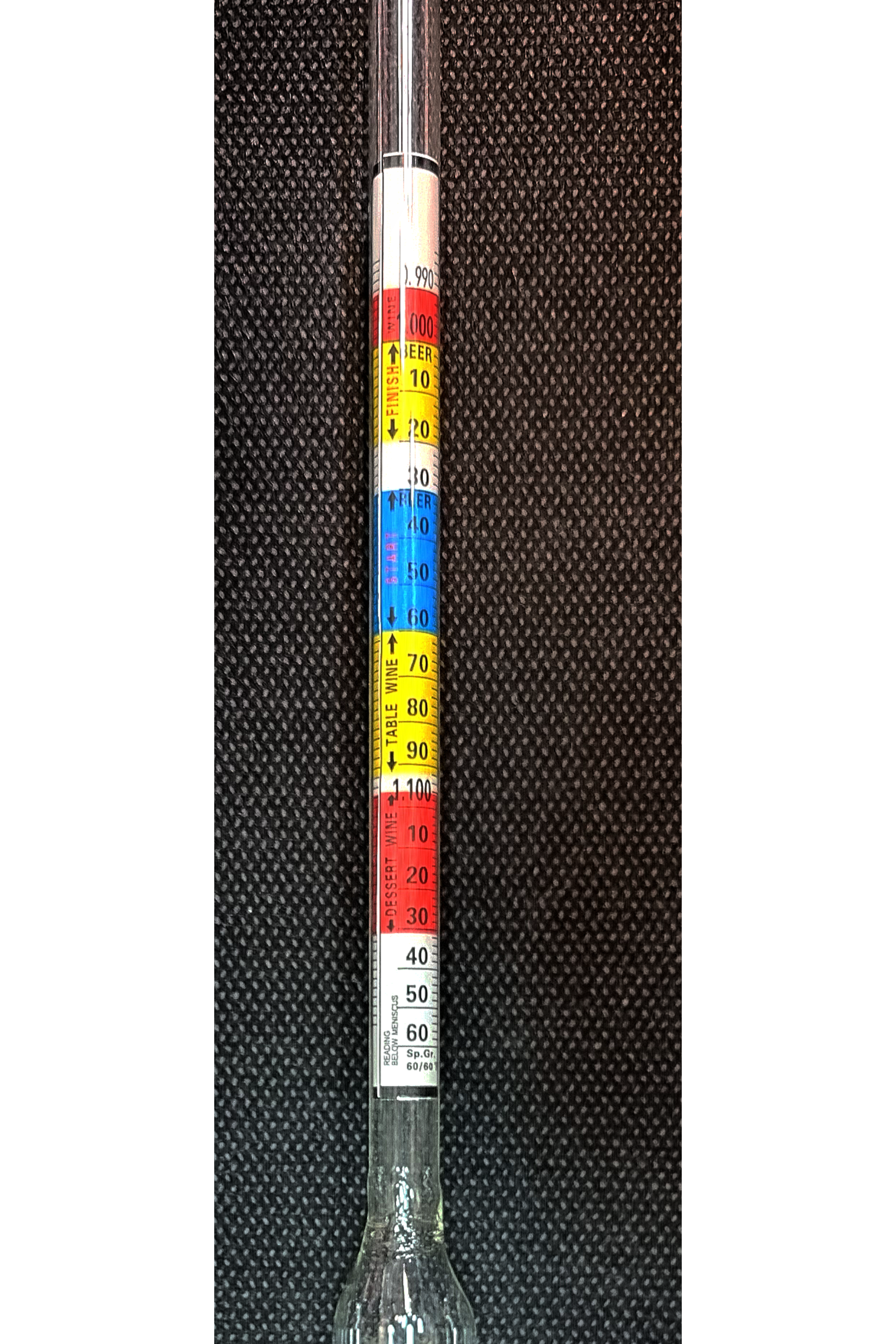 هیدرومتر: از ۹۸۲ تا ۱۱۶۰, قند سنج: از ۰ تا ۳۵ درصد, الکل سنج: از ۰ تا ۲۰ درصد
